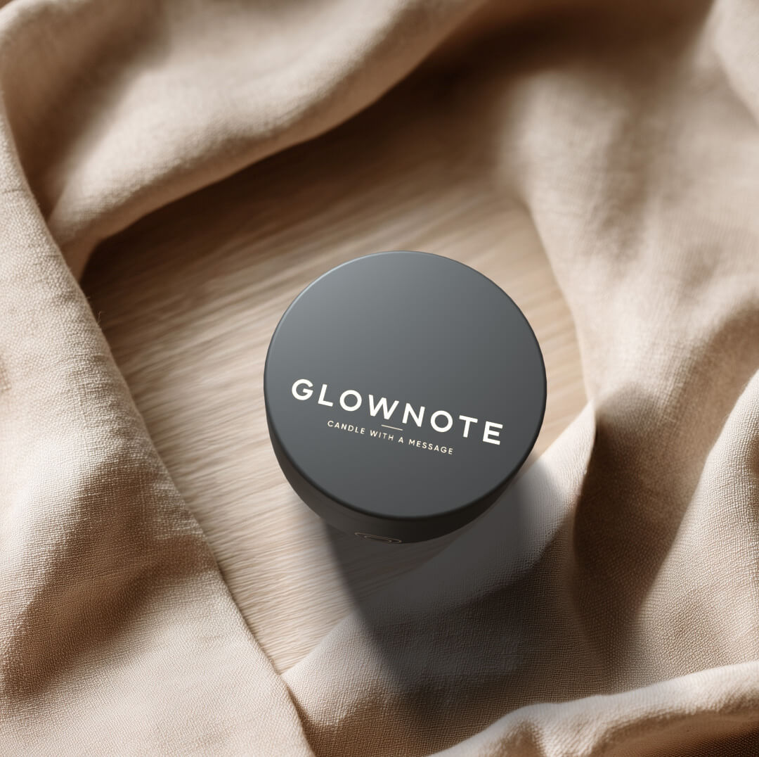 Elke GlowNote zit in een mat metalen blikje en wordt verpakt in een stevige koker. Minimalistisch van buiten, persoonlijk van binnen.